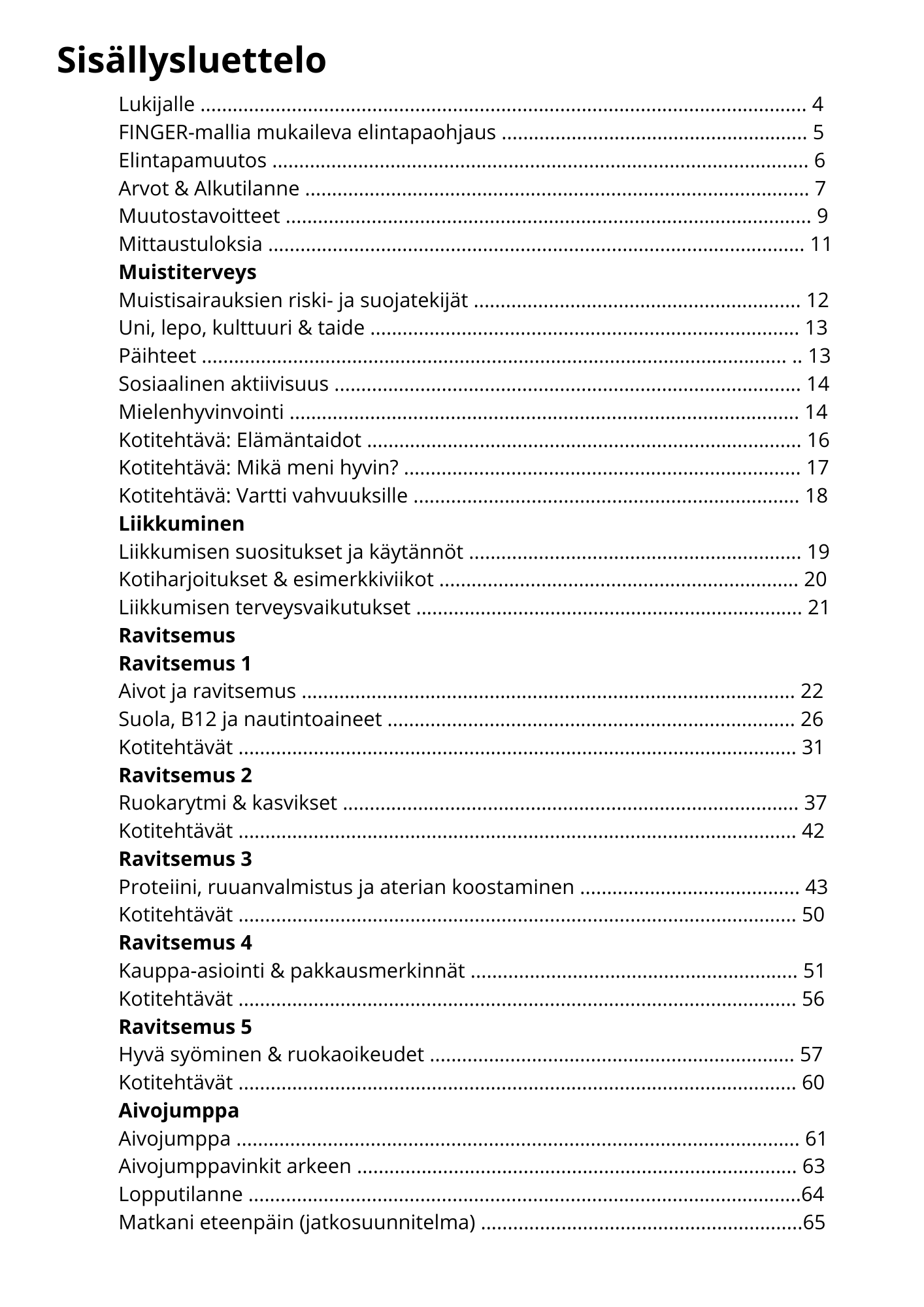 Elintapaohjaus on pitkäkestoista ja ryhmämuotoista, koostuen teoriakerroista, ravitsemusohjauksesta, liikuntaohjauksesta sekä aivojumpasta (sis. kulttuuri, mielenhyvinvointi, uni). Toteutus tapahtuu yhteistyössä hyvinvointialueen ja kuntien kanssa.
