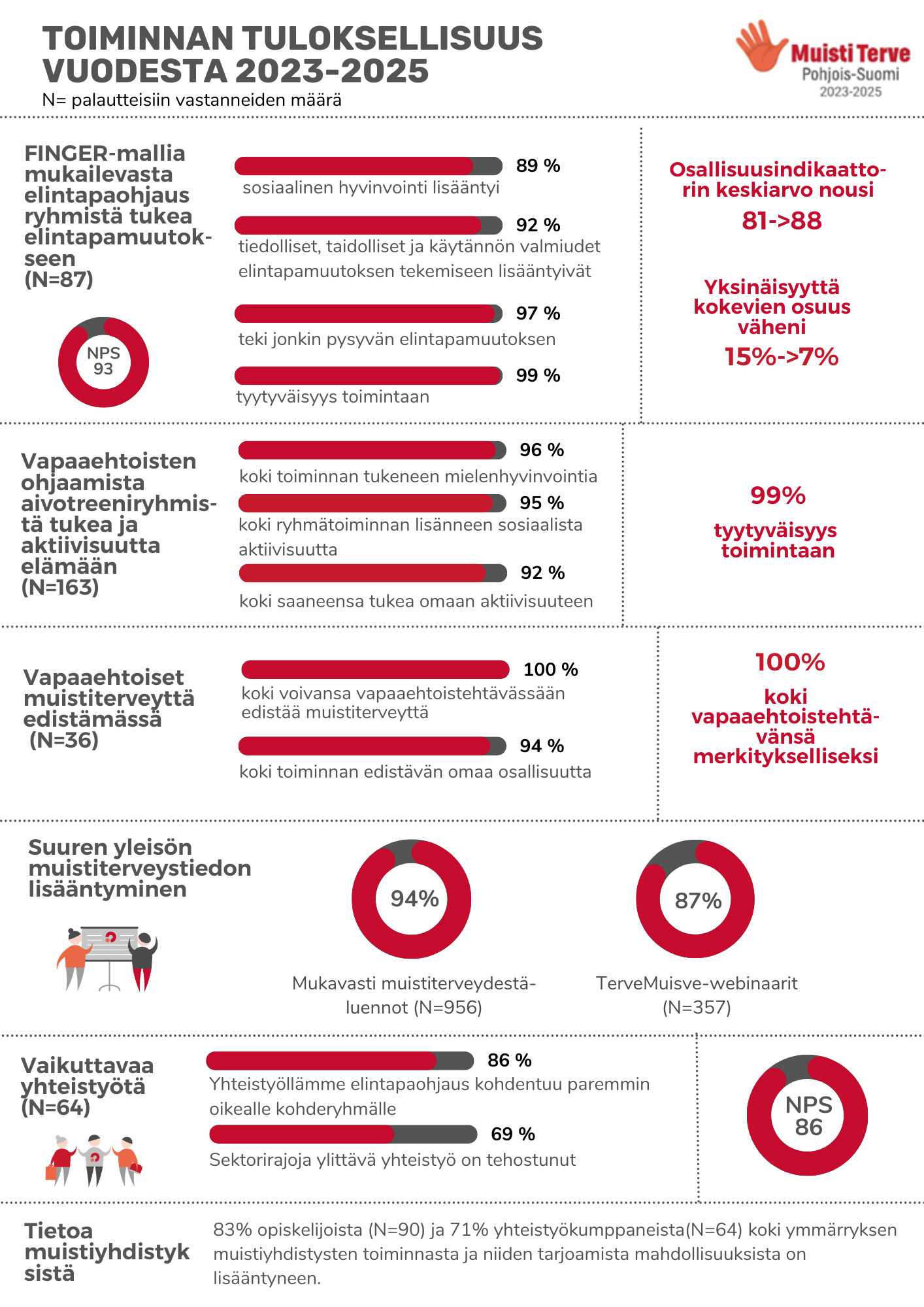 Kohderyhmä: muistisairauksien riskiryhmään kuuluvat 60-79-vuotiaat henkilöt. Pohjois-Pohjanmaan alueella kohderyhmä on ollut vuoden 2024 aikana 68-vuotiaat ikäneuvolan asiakkaat.