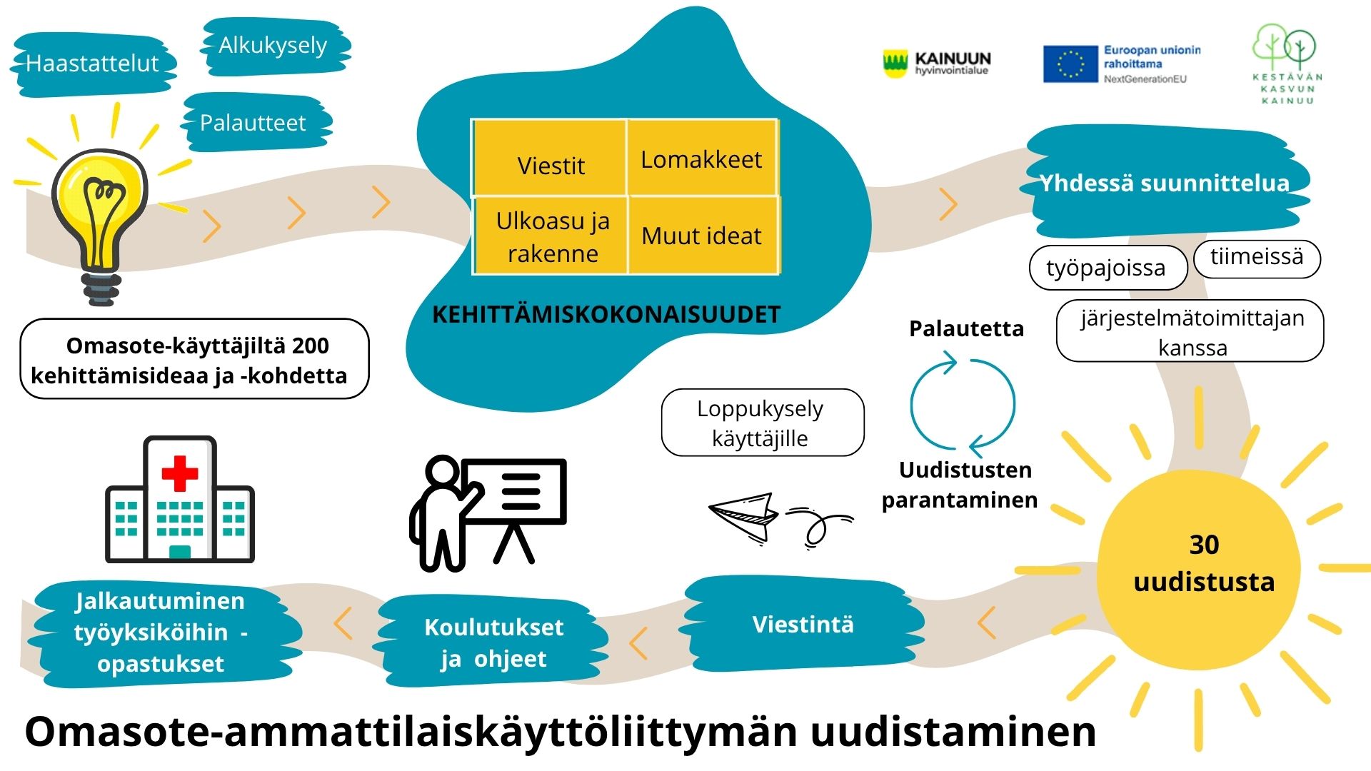 Tavoitteena on luoda Omasote-palvelualustasta sujuvampi ja saavutettavampi digipalvelukokonaisuus, joka hyödyttää sekä asiakkaita, ammattilaisia että organisaatiota. Omasote on Kainuun hyvinvointialueen digitaalinen palvelukanava.
