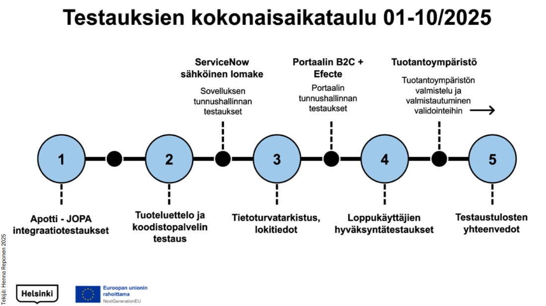 Testaus osoittautui resursoinniltaan vaativammaksi kuin alun perin arvioitiin, mikä opetti varautumaan riittävään asiantuntijaresursointiin ja useisiin yhteisiin palavereihin monitoimijaympäristössä. Virhemäärää ei voitu ennakoida tarkasti, mutta ratkaisukeskeisyys, osaaminen ja sinnikkyys korostuivat prosessin aikana.