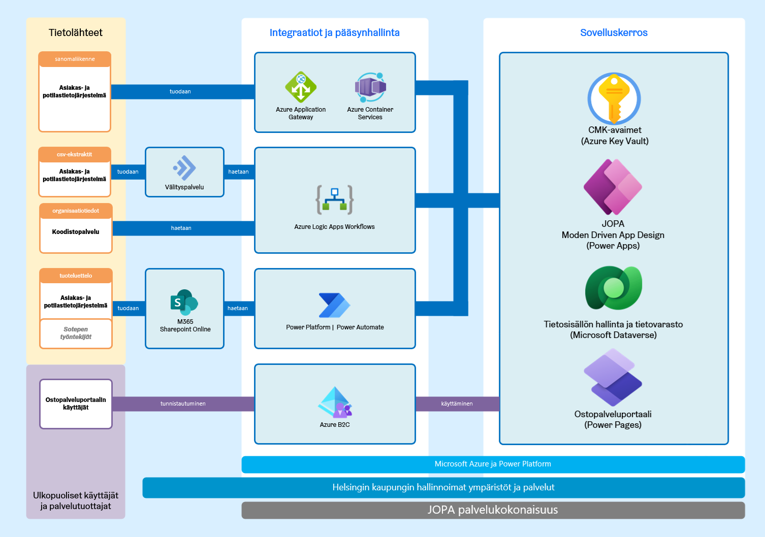JOPA-projektin kehittäminen toteutettiin monitoimijaympäristössä, jossa yhdistettiin substanssi- ja tekninen asiantuntemus sekä hyödynnettiin erityisosaamista tietosuoja-, tietoturva-, viestintä- ja hankinta-asioissa.