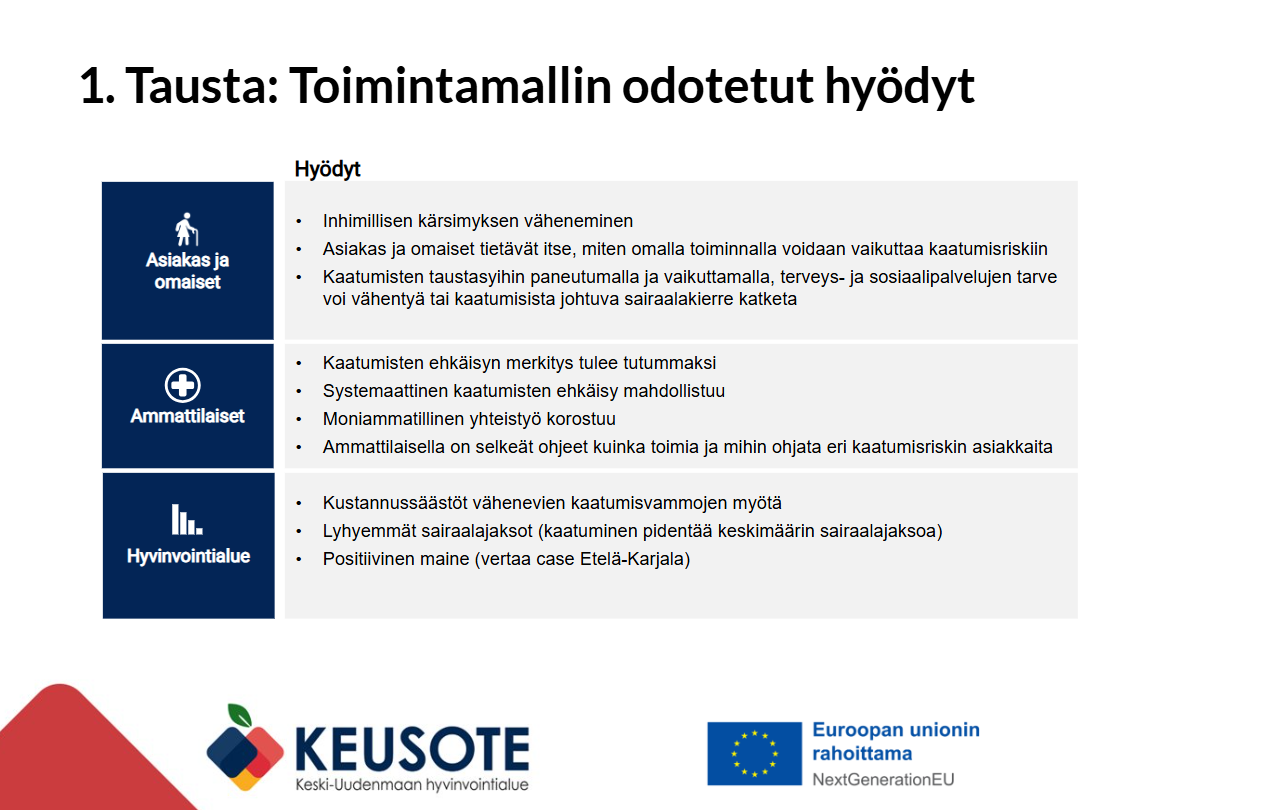 Kaatumisten ehkäisyn toimintamalli, Keski-Uudenmaan hyvinvointialue (RRP, P4, I1)