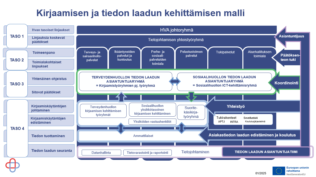 Kirjaamisen ja tiedon laadun kehittämisen mallin luomisella pyritään laadukkaan sote-tiedon tuottamiseen ja systemaattiseen tiedon laadun arviointiin ja parantamiseen.
