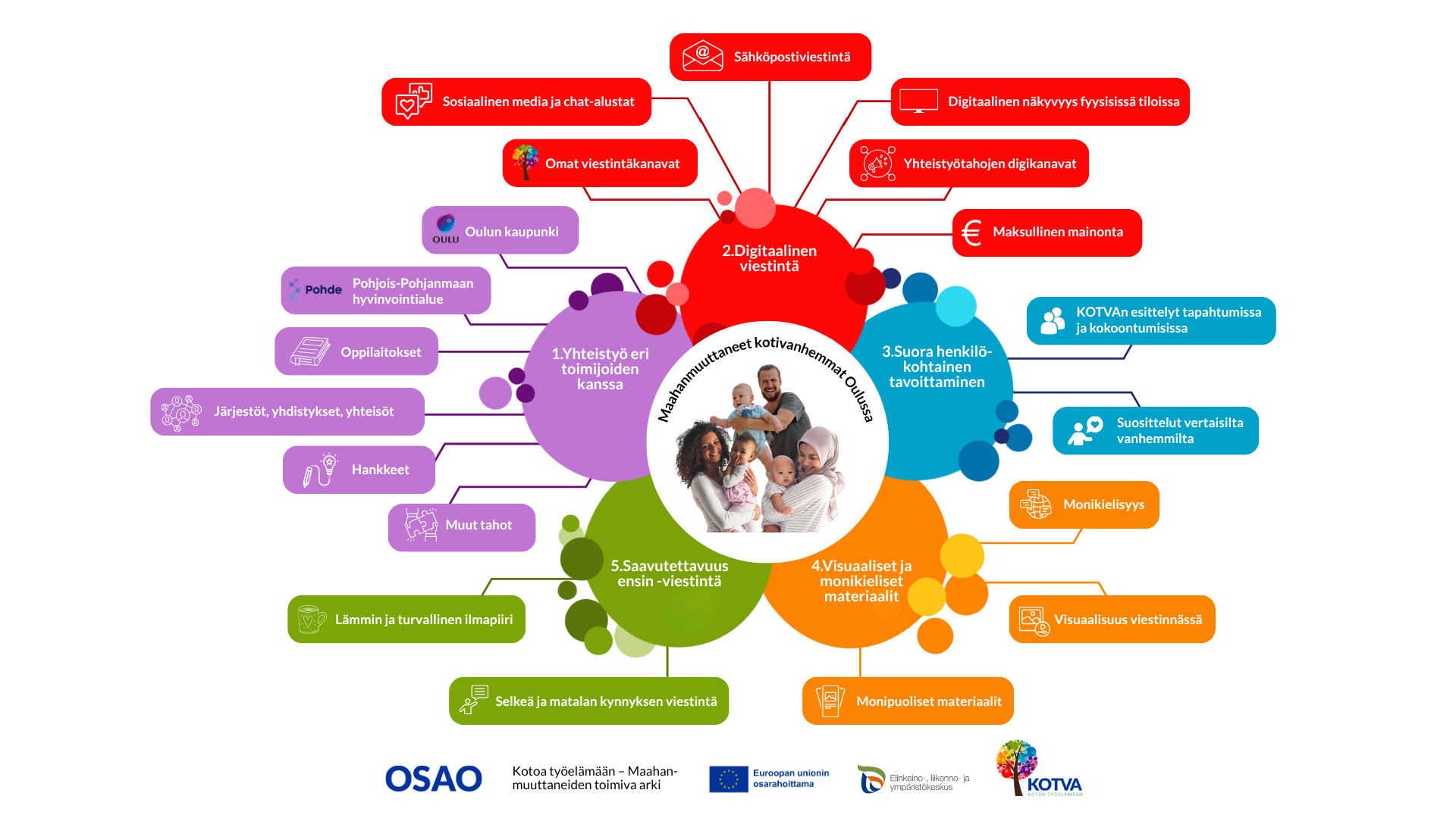 Strategisesti kehitetty monikanavainen viestintätoimintamalli mahdollistaa kotona lapsiaan hoitavien vanhempien tavoittamisen ja aktivoinnin kotoutumista, koulutusta, työllistymistä ja arjenhallintaa tukevien palveluiden piiriin. Yhteistyö alueen jo olemassa olevien palveluiden, yhdistysten ja kehittämistoimijoiden kanssa on tässä keskeistä.
