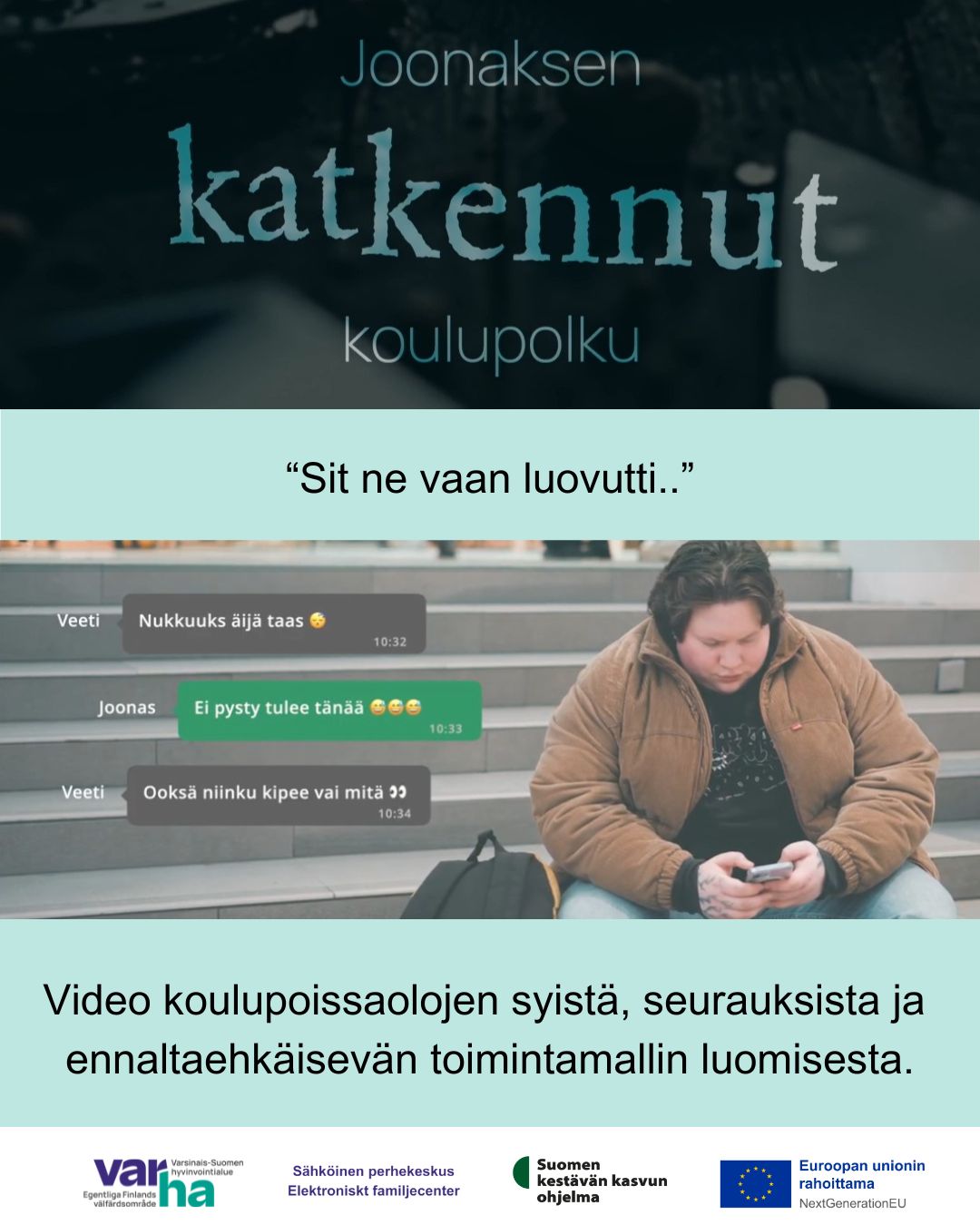Lisäksi video tukee yhteisten toimintatapojen ja varhaisen puuttumisen mallin luomista tarjoamalla mahdollisuuden kouluissa pohtia koulun omia toimintatapoja vastaavissa tilanteissa, kuin Joonaksella. Videon pohjalta kouluhenkilöstön ja opiskeluhuoltohenkilöstön yhteistyönä on hyvä pohtia