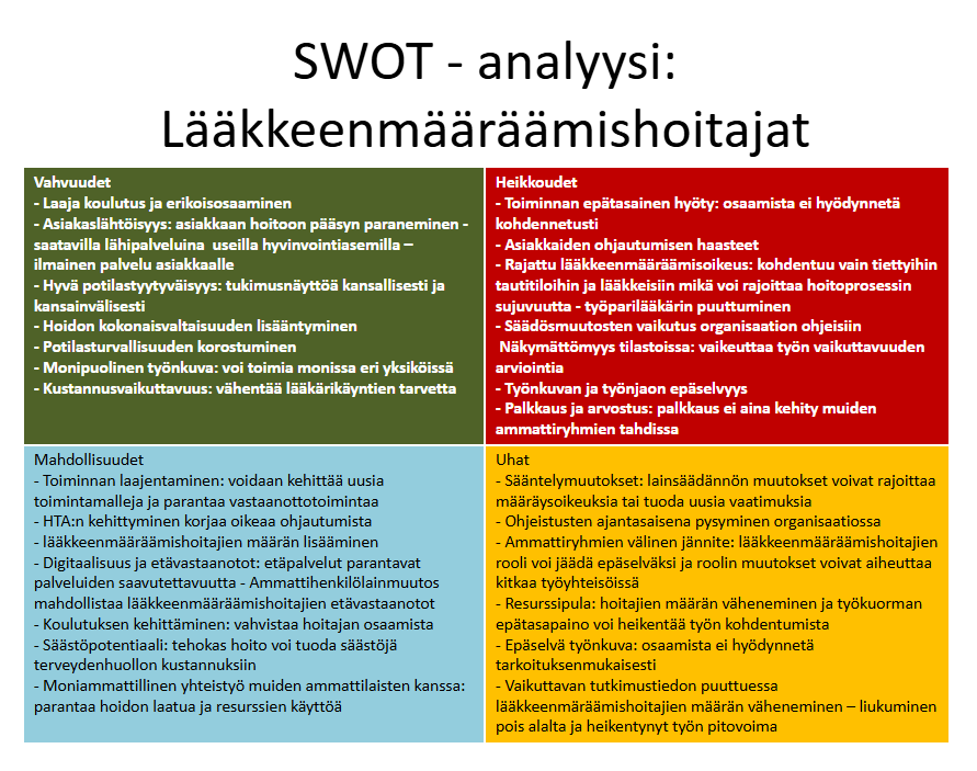 - Lääkkeenmääräämishoitajan työn ja osaamisen näkyvyyden lisääminen organisaatiossa sekä asiakkaille.