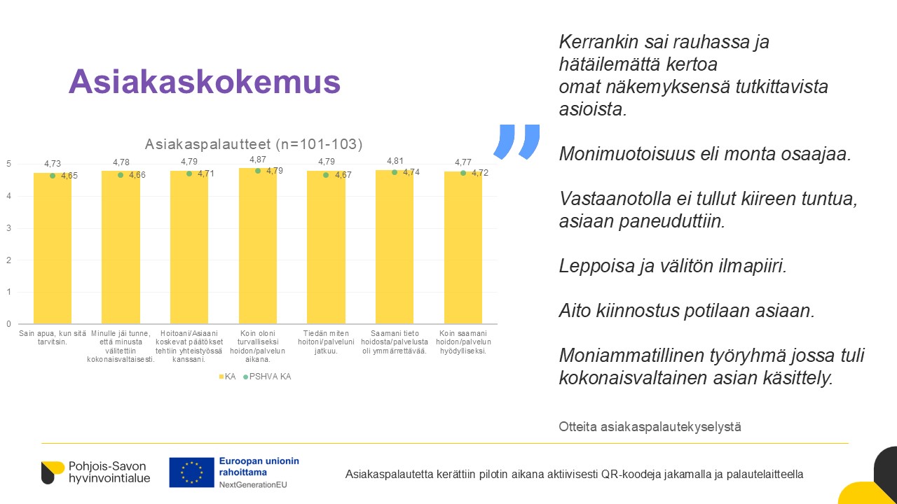 - Avoin HowSpace kehittämisalusta ja palautekysely joka on avoinna koko pilotoinnin ajan (toimintamallin kehittäminen mm. perehdyttäminen, asiakastilanteet, ohjaus, monialainen työskentely, tilojen ja toimintaympäristön soveltuminen), ks. pylväsdiagrammikuva