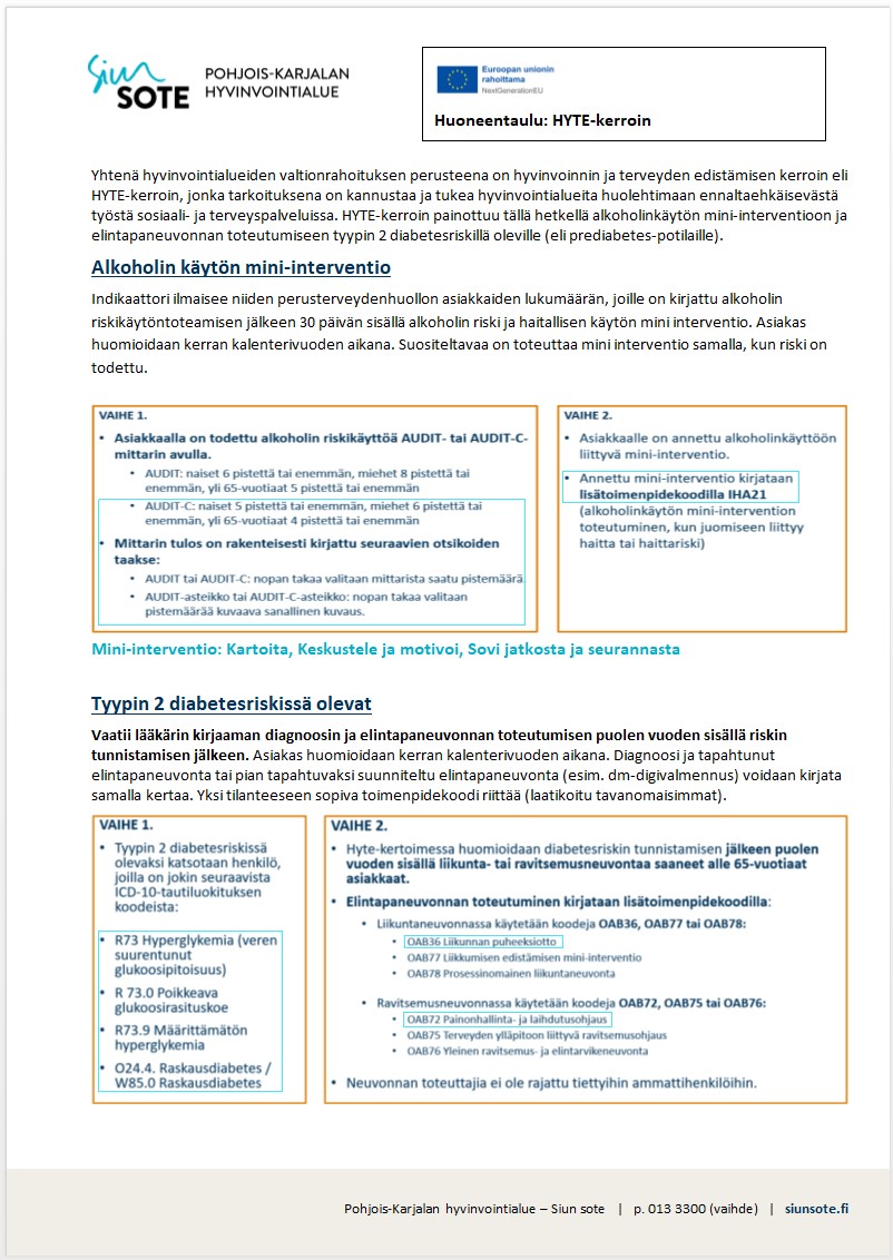 Pitkäaikaissairauksien hoidon kehittäminen terveysasemilla, Pohjois-Karjalan HVA (RRP, P4, I1)