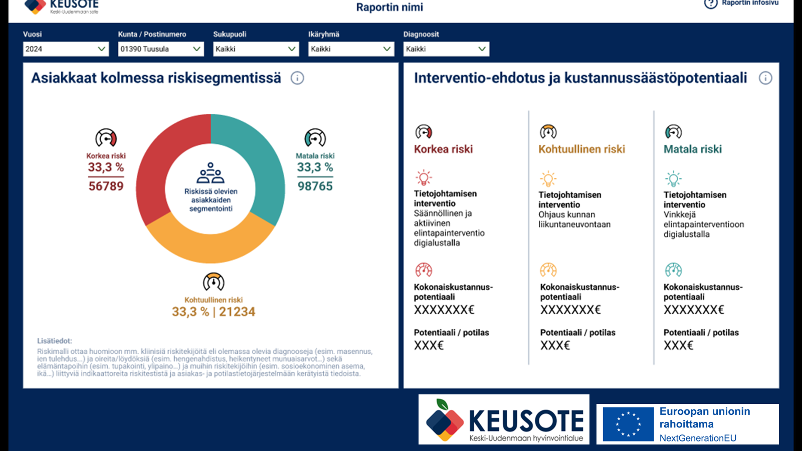 - Ennustemallit voivat tukea kustannussäästöjä kohdentamalla hoitoa, mutta käyttöönotto vaatii investointeja datan laadun parantamiseen, integraatioihin ja koulutukseen.